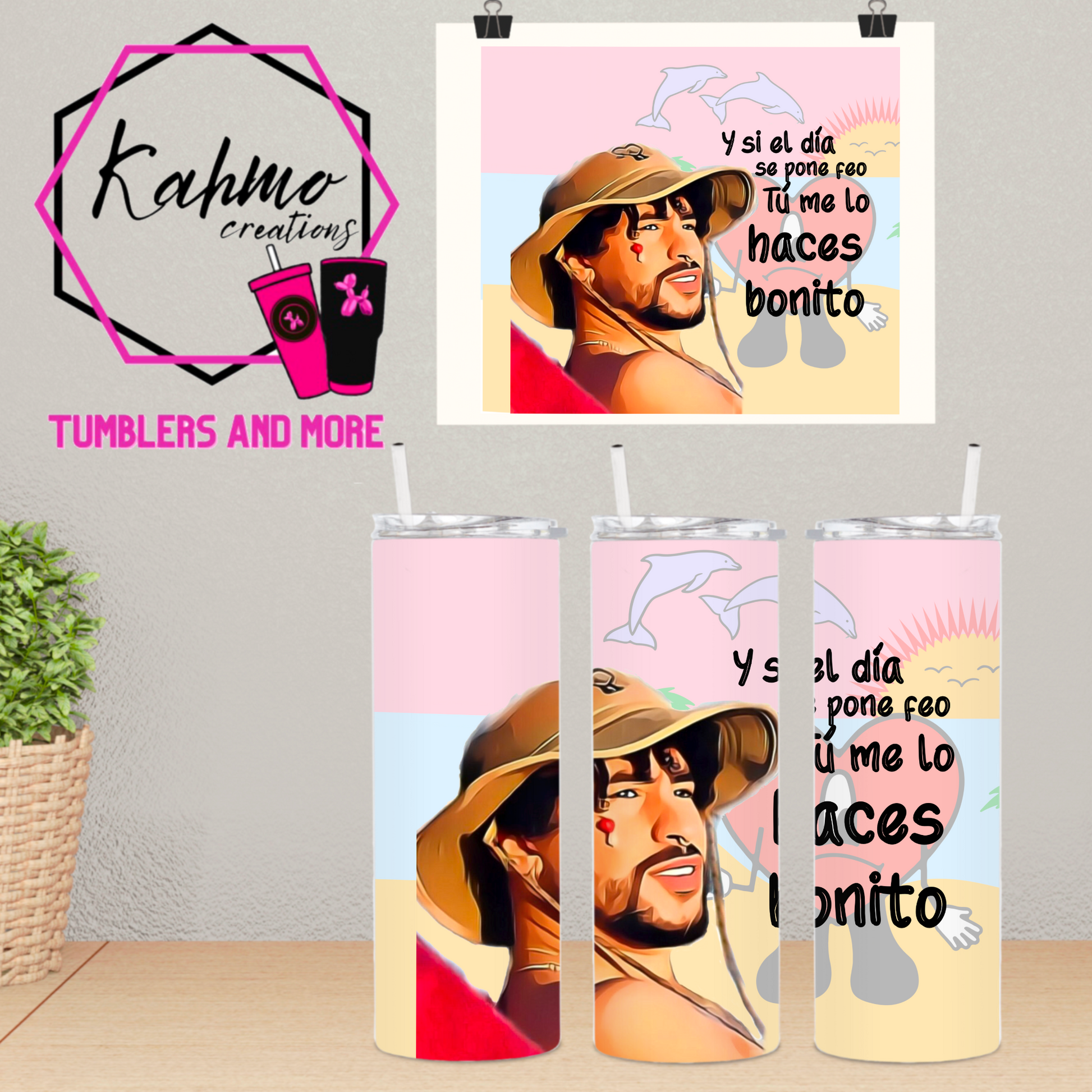 Featuring a bold design of this Bad Bunny Un verano sin ti tumbler. This skinny tumbler is equipped with a double-walled, stainless-steel insulation to keep your cold drinks cold and your hot drinks hot. With a 20-ounce capacity, is large enough to carry what you need, and its snap on lid protects it from spills. The sublimation design allows for an image that lasts for years without cracking. Whether you're on the road or at home, this insulated tumbler is perfect for making sure you stay hydrated, caffeinated, and ready to go!