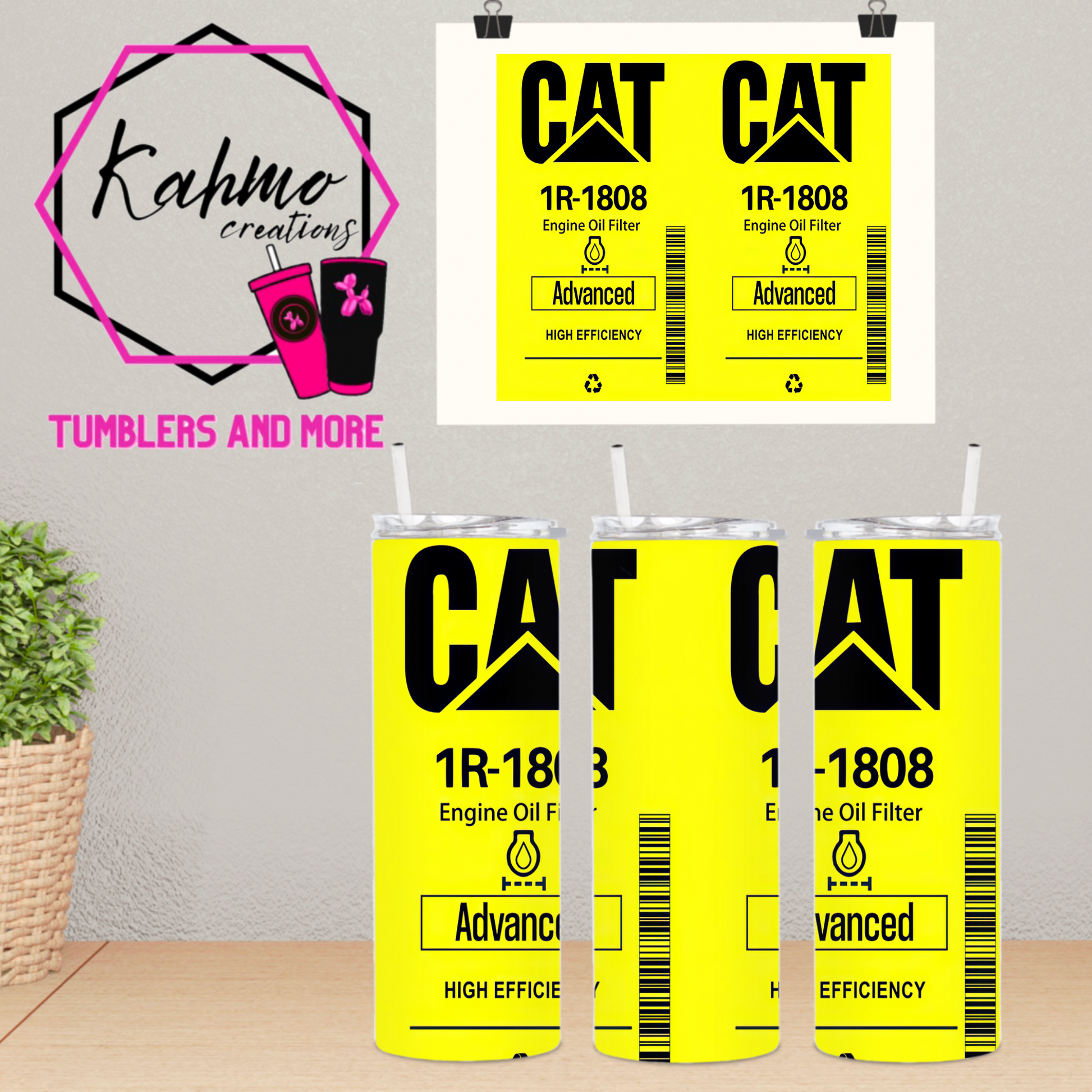 Remember those great times you spent with your old trusty car, cruising down the road? Now you can relive them every time you take a sip from your tumbler, featuring a bold design of a CAT® engine oil filter can. The perfect accessory to any automotive enthusiast, this skinny tumbler is equipped with a double-walled, stainless-steel insulation to keep your cold drinks cold and your hot drinks hot. With a 20-ounce capacity, this tumbler is large enough to carry what you need, and its snap on lid protects it from spills. The sublimation design allows for an image that lasts for years without cracking. Whether you're on the road or at home, this insulated tumbler is perfect for making sure you stay hydrated, caffeinated, and ready to go! Free plastic straw included with your purchase!