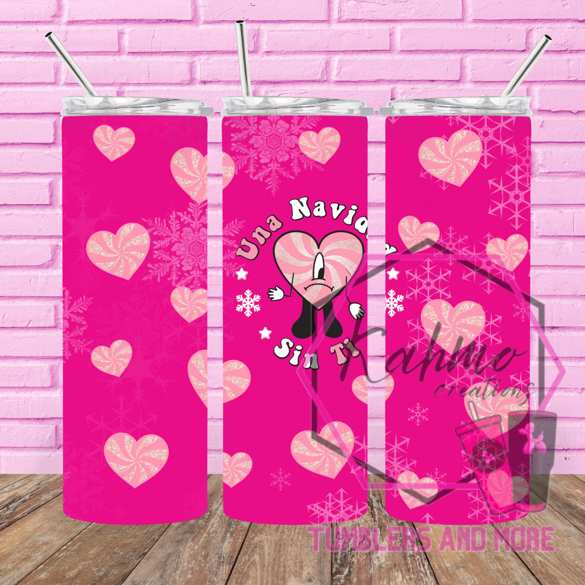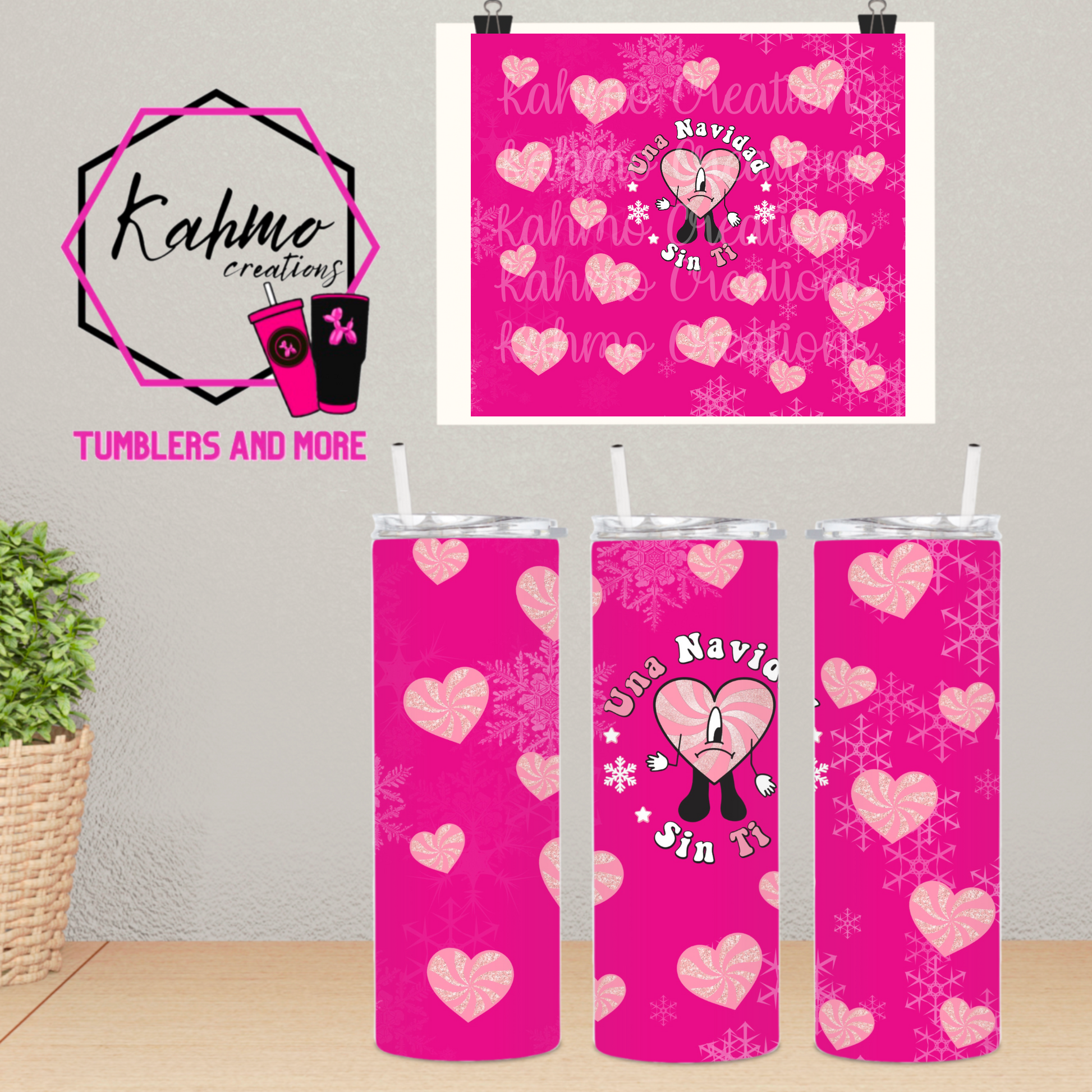Featuring a bold design of this Pink Bad Bunny Christmas Skinny Tumbler (20 oz.). This skinny tumbler is equipped with a double-walled, stainless-steel insulation to keep your cold drinks cold and your hot drinks hot. With a 20-ounce capacity, is large enough to carry what you need, and its snap on lid protects it from spills. The sublimation design allows for an image that lasts for years without cracking. Whether you're on the road or at home, this insulated tumbler is perfect for making sure you stay hydrated, caffeinated, and ready to go!