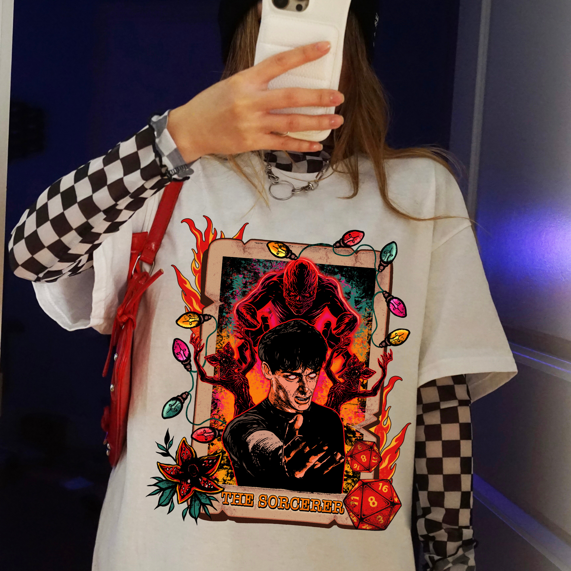 Featuring a moody, retro aesthetic, this tee is perfect for those who love darker tones with a nostalgic twist.