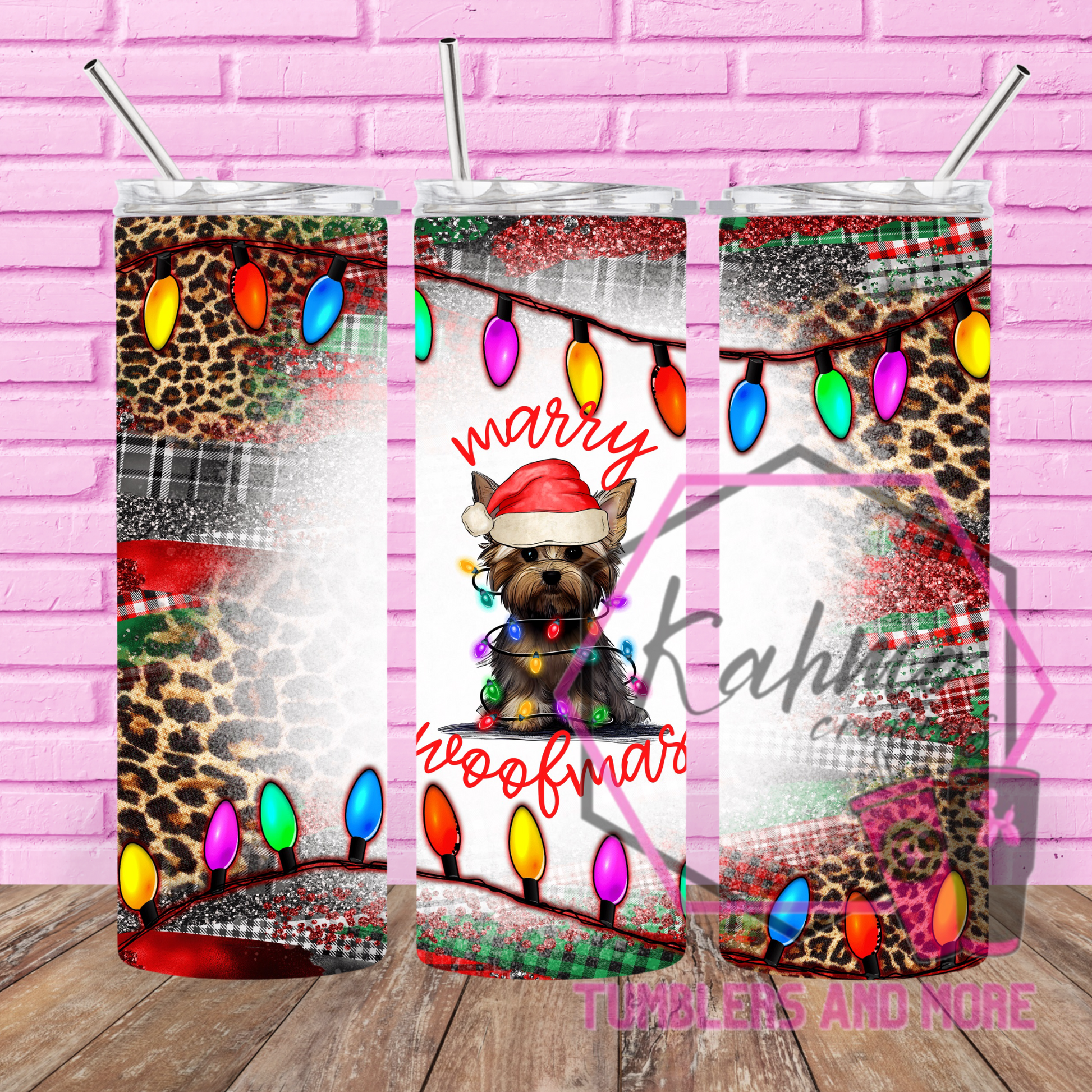 Yorkie Merry Christmas, Merry Woofmas Skinny Tumbler (20 oz.)
